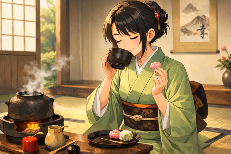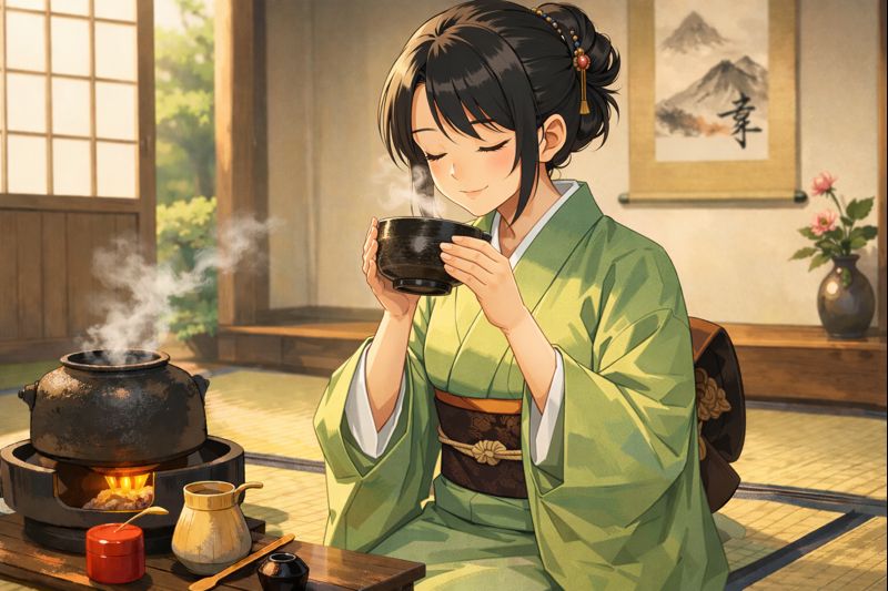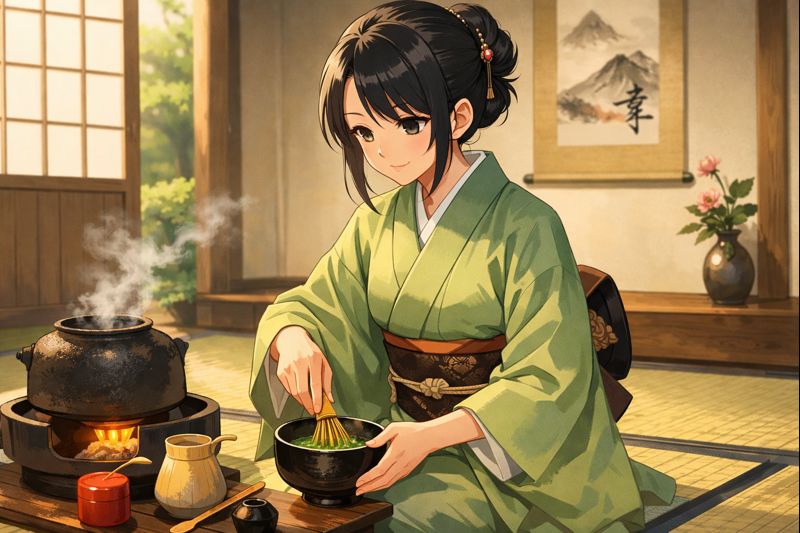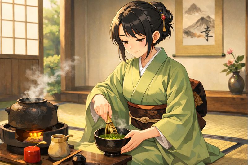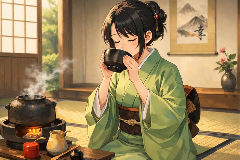 この茶人の女性はお抹茶を味わっているよう🧐 美味しく点てることはできたかな⁉️